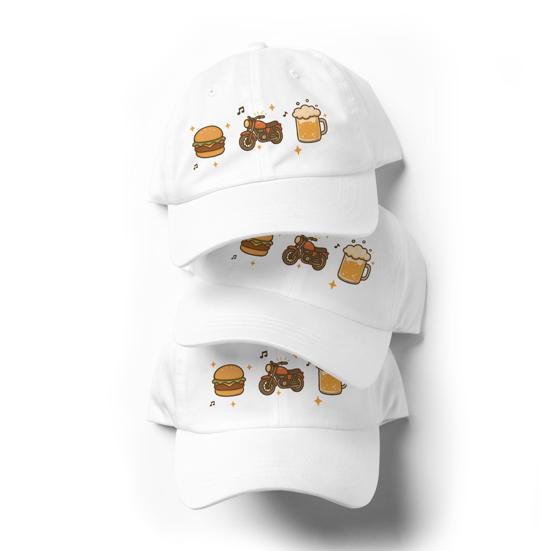 Ready for good vibes and great times? This festival-inspired dad hat brings the spirit of summer with a cute, hand-drawn illustration celebrating life’s essentials: burgers, bikes, and beer. Perfect for music festivals, food truck rallies, and laid-back weekends. Just add sunshine (and maybe a cold one).